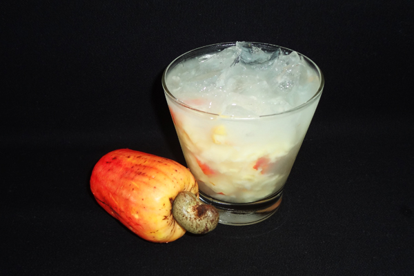 Cortar o caju em cubos pequenos; amassar o caju com açúcar; adicionar uma dose de cachaça branca e gelo quebrado; colocar em coqueteleira e agitar bem; despejar em copo médio com muito gelo. Comer a sobra da polpa é muito bom.