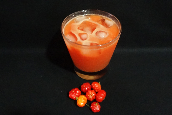 Amassar bem as pitangas, evitando quebrar os caroços; adicionar quatro cubos de gelo e quatro gotas de adoçante; adicionar uma dose de vodka; bater bem na coqueteleira, até separar a polpa do caroço; passar tudo em peneira grossa; servir em copo médio com muito gelo quebrado. O suco da pitanga pode ser obtido, também, com o pulsar do liquidificador, evitando quebrar muito os caroços. Deve ser usada a pitanga colhida no dia.